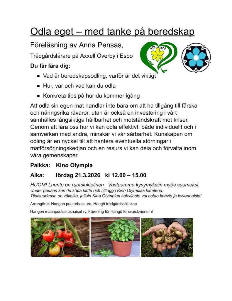 Föreläsning om livsmedelsproduktion på den egna tomten, Anna Pensas.